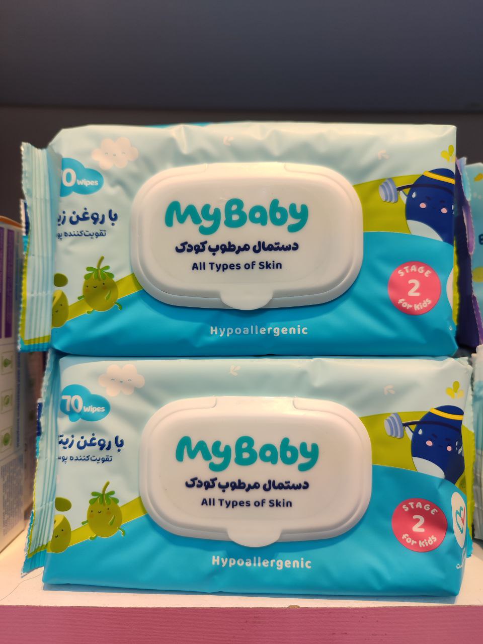 خانهشوینده و بهداشتی کودکدستمال مرطوب کودک دستمال مرطوب مای بی بی با روغن زیتون